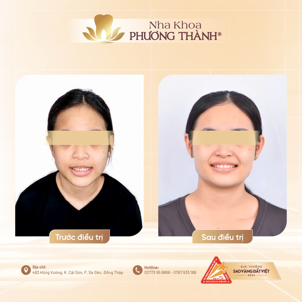 An orthodontic treatment case at Phuong Thanh Dental Clinic shows a remarkable transformation not only in tooth position and bite alignment, but also in the overall harmony of the facial profile after treatment.