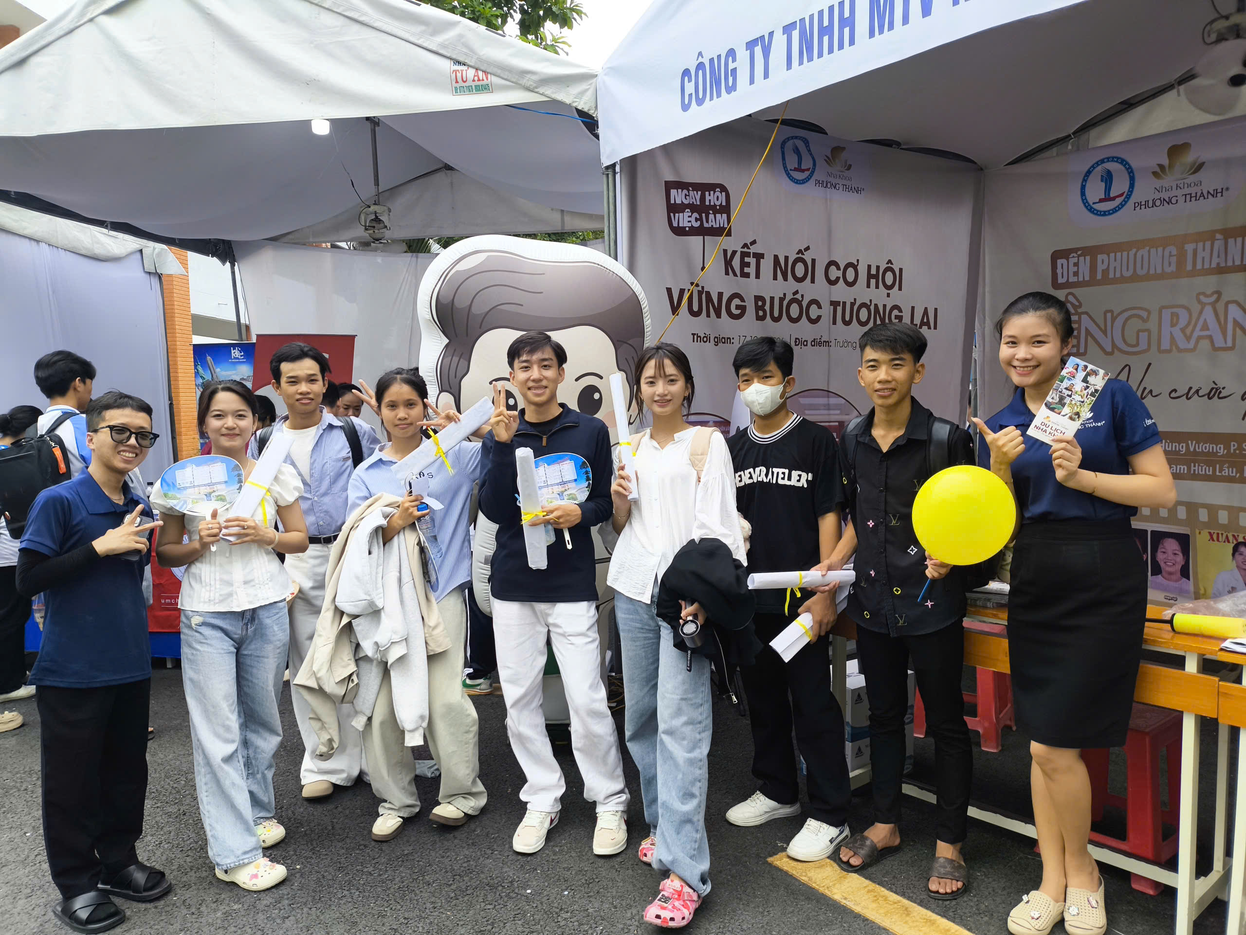 – Gian hàng rộn ràng: Tại Ngày hội việc làm, gian hàng của Nha khoa Phương Thành đã đón tiếp rất đông các bạn sinh viên đến tham gia các trò chơi nhỏ, giao lưu và nhận về những phần quà chăm sóc răng miệng hấp dẫn.