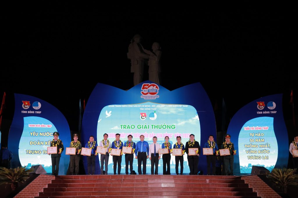 Tối 24/04/2025, tại Di tích Địa điểm tập kết ra Bắc năm 1954 (TP. Cao Lãnh), Tỉnh đoàn Đồng Tháp tổ chức chương trình kỷ niệm 50 năm Ngày Giải phóng miền Nam, thống nhất đất nước, kết hợp trao giải thưởng “Gương mặt trẻ tiêu biểu Đất Sen hồng” và tuyên dương “Thanh niên tiên tiến làm theo lời Bác” năm 2025.