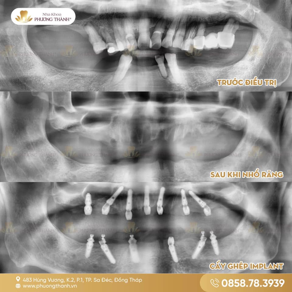 Tại Nha khoa Phương Thành, các trường hợp mất răng toàn hàm hoặc răng còn lại không còn tiên lượng sẽ được bác sĩ thăm khám kỹ lưỡng dựa trên lâm sàng, phim chụp và điều kiện xương hàm thực tế để xây dựng kế hoạch điều trị phù hợp. Với những trường hợp đủ chỉ định, phương án Implant All-on-6 kết hợp phục hình tạm tức thì có thể là lựa chọn giúp phục hồi sớm cả về ăn nhai, thẩm mỹ và chất lượng sống.