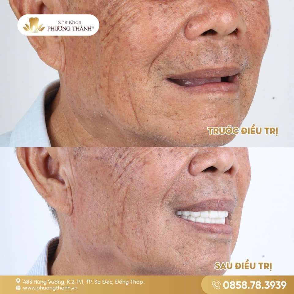 Ca điều trị được thực hiện theo kế hoạch bởi đội ngũ bác sĩ phẫu thuật và phục hình tại Nha khoa Phương Thành. Sau phẫu thuật, khách hàng được gắn hàm tạm tức thì trên Implant, từ đó hỗ trợ sinh hoạt, giao tiếp và thích nghi tốt hơn trong giai đoạn đầu sau điều trị.