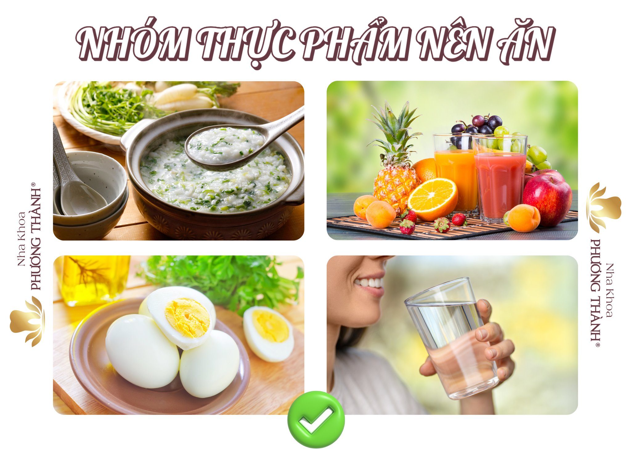 Một chế độ ăn mềm, lành tính và phù hợp trong những ngày đầu sau nhổ răng sẽ giúp vùng tổn thương hồi phục thuận lợi hơn, đồng thời giảm đáng kể cảm giác khó chịu trong giai đoạn hậu phẫu.